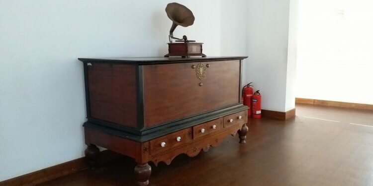 While the one on the right is an adorned typical cupboard of colonial times, the one on the left is a simplistic rectangular representation of a wooden storage ches, especially popular during British colonial times.